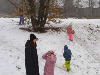 Schlittenfahren in der OGS