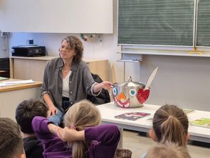 Kinderbuchautorin Christine Willfurth aus Weiden las den Kindern der beiden ersten Klassen aus ihren Büchern vor.
