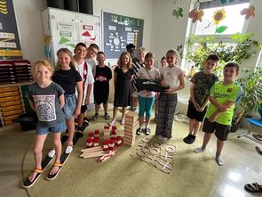 Gleich nach den Pfingstferien war es soweit. Die Kinder der Klasse 4b bekamen die fünf bestellten Gemeinschaftsspiele geliefert.