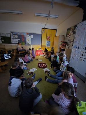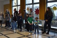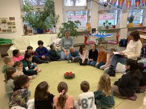 Begrüßt wurden die Gäste musikalisch von der Klasse 4a und Herrn Gallesdörfer mit dem Lied "Wann wird Weihnachten". Die Kinder führten dann "ihren" Vorleser oder Vorleserin mit in die Klasse, wo alle schon gespannt im Sitzkreis warteten.