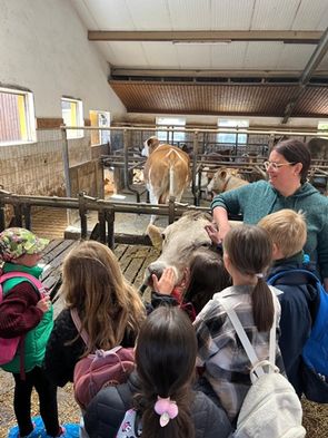 Einen Schultag der besonderen Art erlebten die 2. Klassen der Grundschule Altenstadt: Mit ihren Lehrerinnen Laura Hörl und Daniela Beierl besuchten sie einen Vormittag lang den Erlebnisbauernhof der Familie Ziegler in Rupprechtsreuth. Dort erfuhren sie alles Wissenswerte rund um die Haltung von Kühen und Erzeugung von Milch. Mit Bäuerin Katharina Ziegler durften die Kinder im Stall sogar Kühe bürsten sowie neugeborene Kälbchen bestaunen. In der Brotzeitpause gab es leckere Brote mit selbstgeschüttelter Butter. Petra Hager (landwirtschaftliche Berufsgenossenschaft) informierte die Schülerinnen und Schüler zudem über Gefahren am landwirtschaftlichen Betrieb. Die Kinder konnten bei einem Traktor den „toten Winkel“ erforschen und im „Helmtest“ anschaulich erfahren, wie wichtig der Schutz ihres Kopfes durch einen Helm ist. Schließlich durften noch die hofeigenen Hühner gestreichelt und gefüttert werden.
