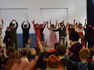 Bunt und närrisch ging´s zu in der Grundschule am Faschingsfreitag, dem letzten Tag vor den Faschingsferien. Da tummelten sich Prinzessinnen, Cowboys, Löwen und Marienkäfer in der Turnhalle. Gleich mehrere Harry Potter wurden gesichtet. Jede Klasse und die AG MuB hatten mit ihren Lehrkräften einen oder zwei Tänze einstudiert, die auf der Bühne vorgeführt wurden. Das Publikum samt den Lehrerinnen und Lehrern tanzten und hüpften begeistert mit, sodass die Zeit wie im Flug verging und die Ferien fast - aber nur fast - vergessen waren.