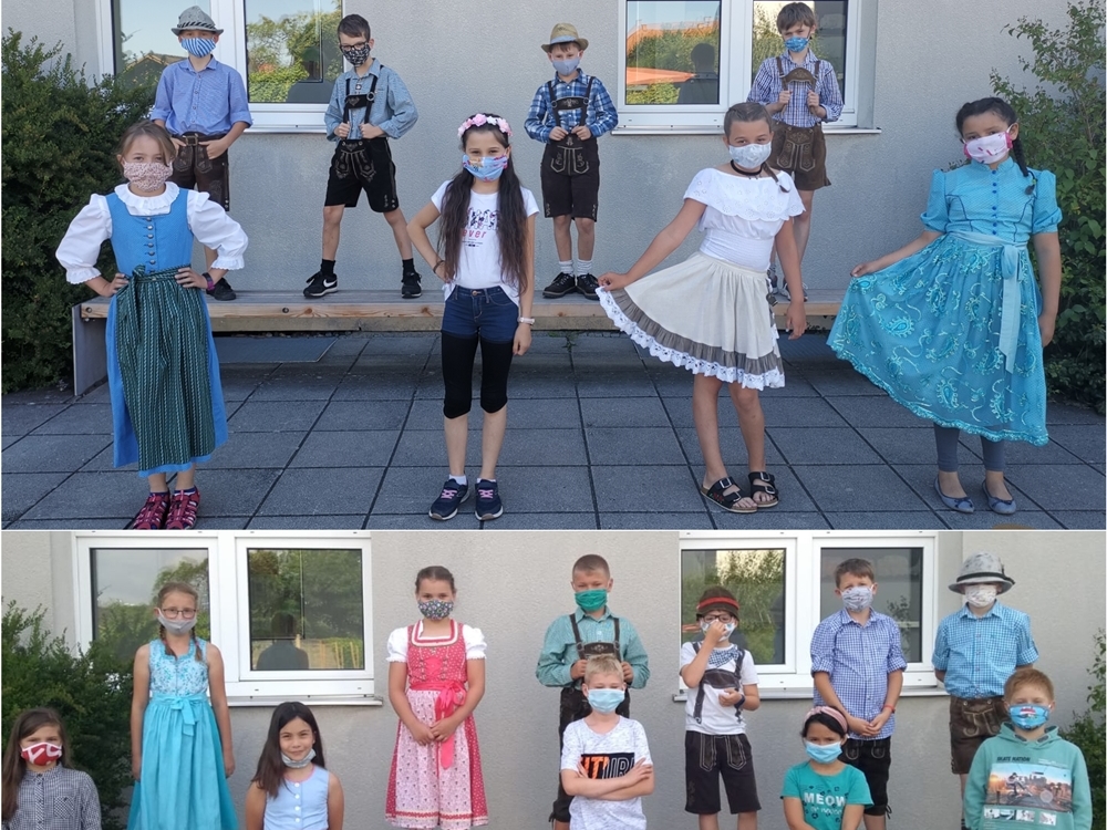 Haferlschuhe, braune Lederhose und blau weiß kariertes Hemd oder fesches Dirndl – so erschienen die Kinder der Klasse 3a an ihrem vorletzten Schultag mit dem Motto „Bayern, des samma mir!“ zum Unterricht.