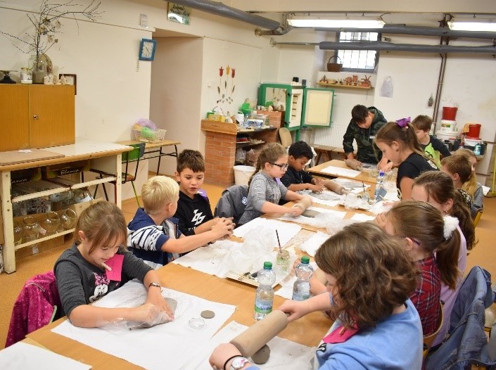 Dort wurden sie herzlich begrüßt von Frau Frankova und Frau Lopušanová sowie den Schülern der 5. Klasse. Basteln mit Ton stand an diesem Tag auf dem Programm. Mittels Farbkarten wurden die deutsch-tschechischen Gruppen gebildet, die an diesem Tag zusammenarbeiten und sich gegenseitig behilflich sein sollten. Mit Plätzchenformen wurden weihnachtliche Anhänger ausgestochen und verziert. Anschließend gestalteten die Schüler Karpfen aus Ton, weil diese Fische in der tschechischen Tradition zu Weihnachten eine große Rolle spielen. Da die Kunstwerke noch gebrannt werden müssen, konnten sie nicht mit nach Altenstadt genommen werden. Aber beim Adventskonzert der Partnerschulen können die Kinder ihren selbstgebastelten Weihnachtsschmuck in Empfang nehmen und ihre Eltern damit überraschen. Es war ein gelungener Vormittag und alle sind schon gespannt auf den Gegenbesuch der Schüler aus Stribro, der im Mai in Altenstadt stattfinden wird.
